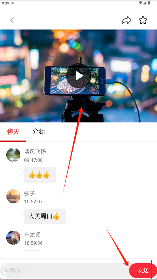 3、在周视频页面选择一场直播进入,即可在聊天区查看互动留言或发表评论。