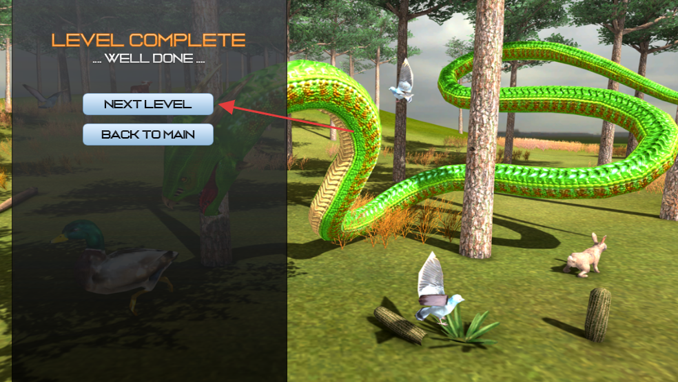 3、发现兔子等可食用目标后,操控蛇靠近并吃掉目标,注意在剩余时间内完成进食任务,提升进食进度。