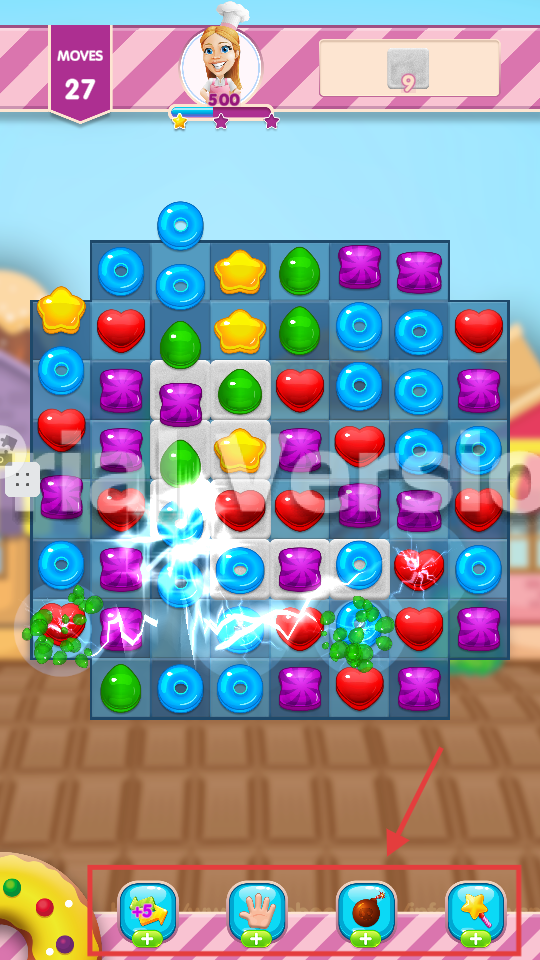 2、包围糖果解法:部分糖果被包围后,用相应消除方式帮助其突破重围,之后即可点击消除。