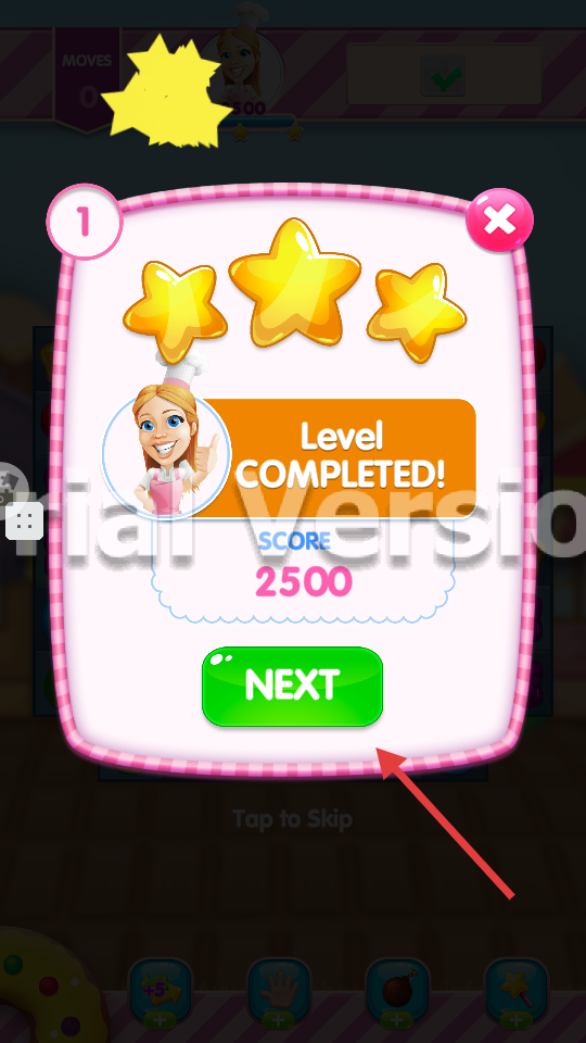 4、关卡完成(【Level-COMPLETED!】【SCORE-2500】)后,点【NEXT】进下一关,解锁新内容。