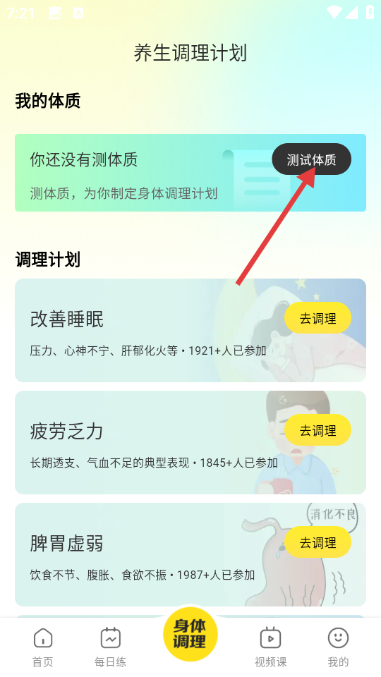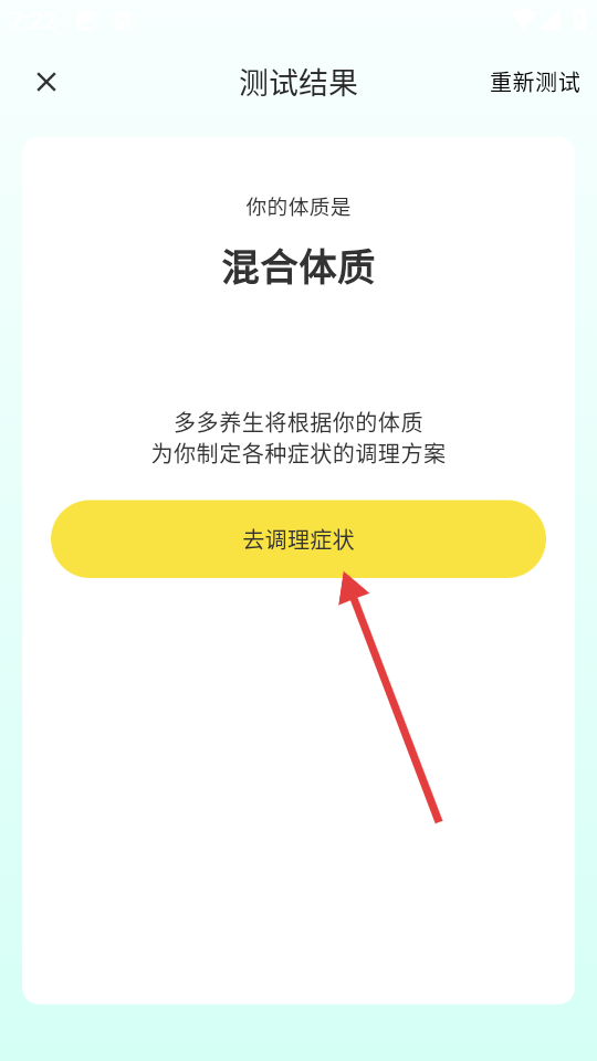 4、完成测试后,查看测试结果,点击【去调理症状】,获取针对性的调理方案。