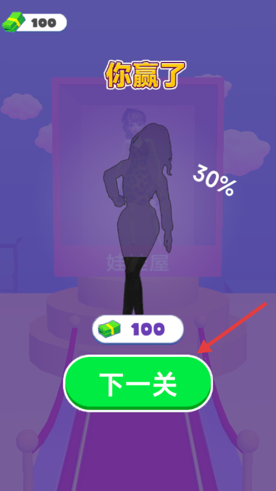 4、成功匹配后显示【你赢了】并获得奖励,点击【下一关】可继续游戏。