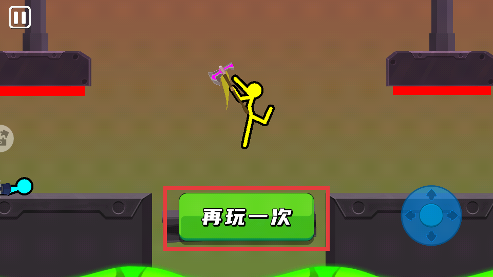 4、挑战失败后点击【再玩一次】重新开始,总结经验优化武器选择与操作技巧。