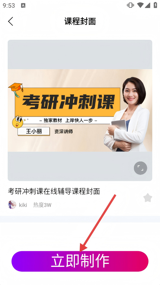3、进入“考研冲刺课”封面详情页,点击【立即制作】,进入封面编辑界面。