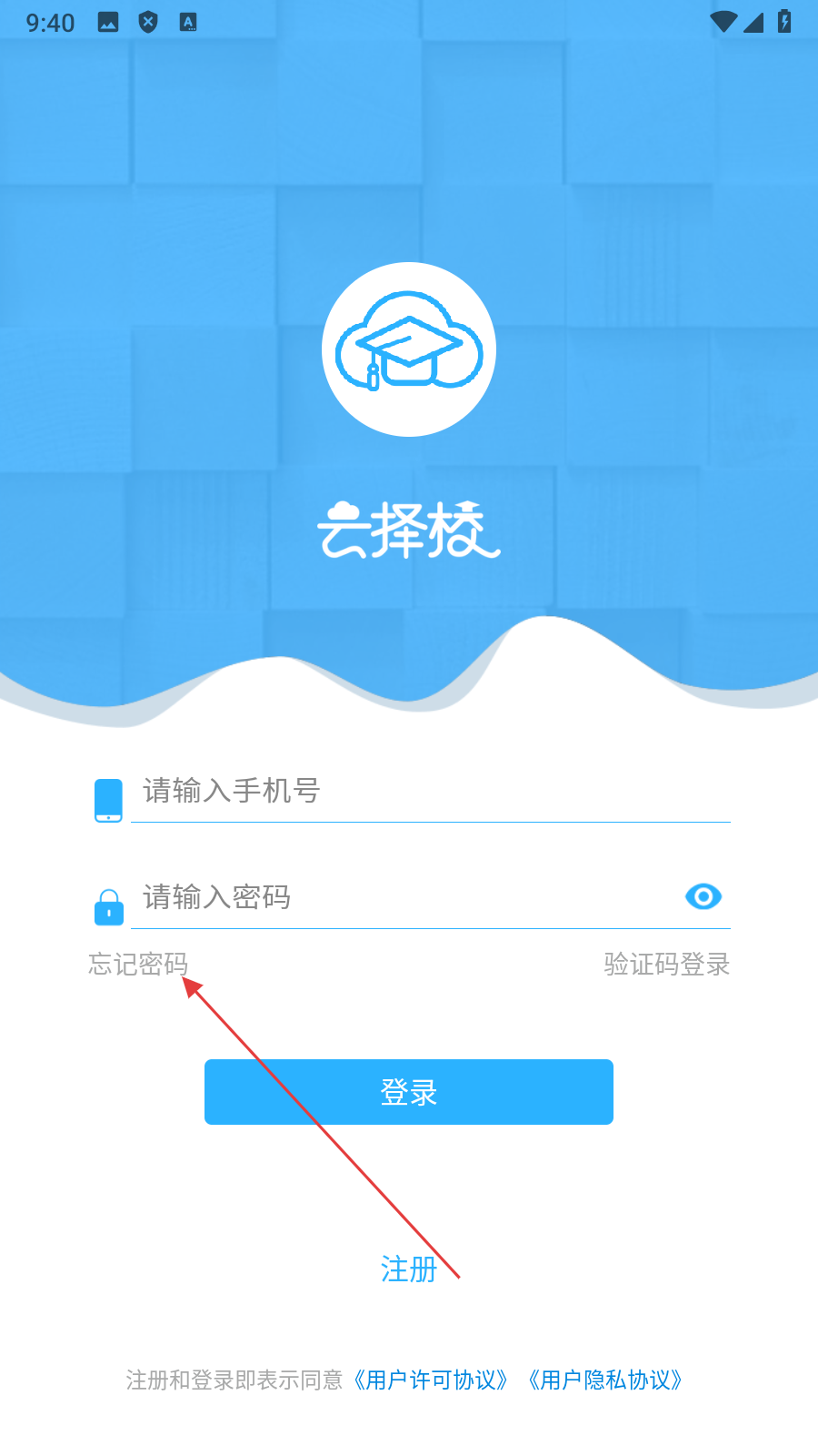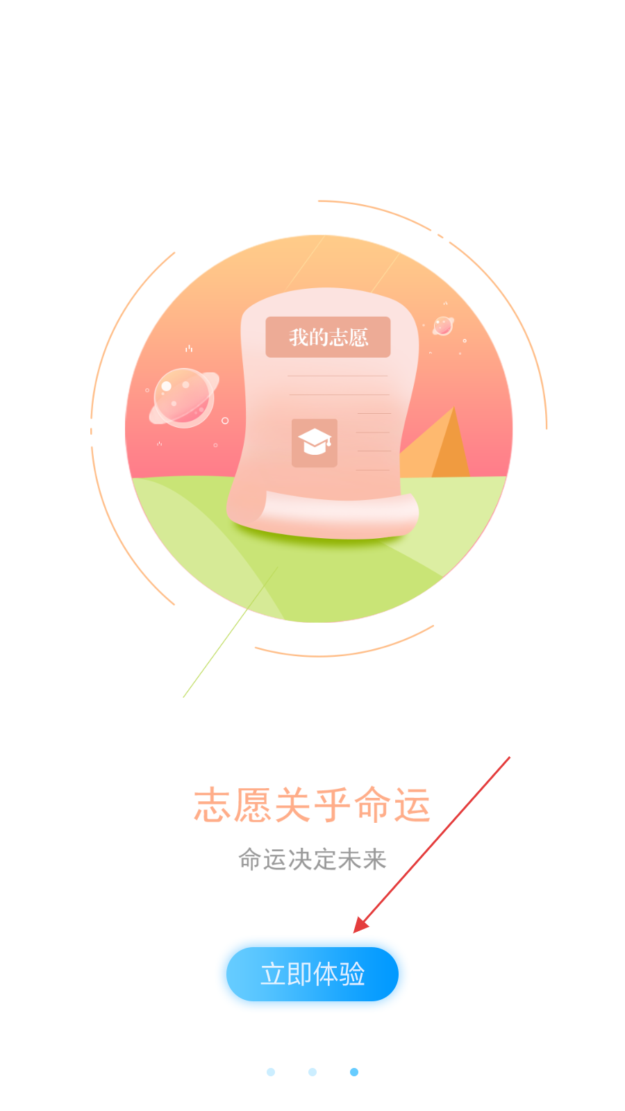 1、在引导界面,点击【立即体验】,进入云择校的登录页面。