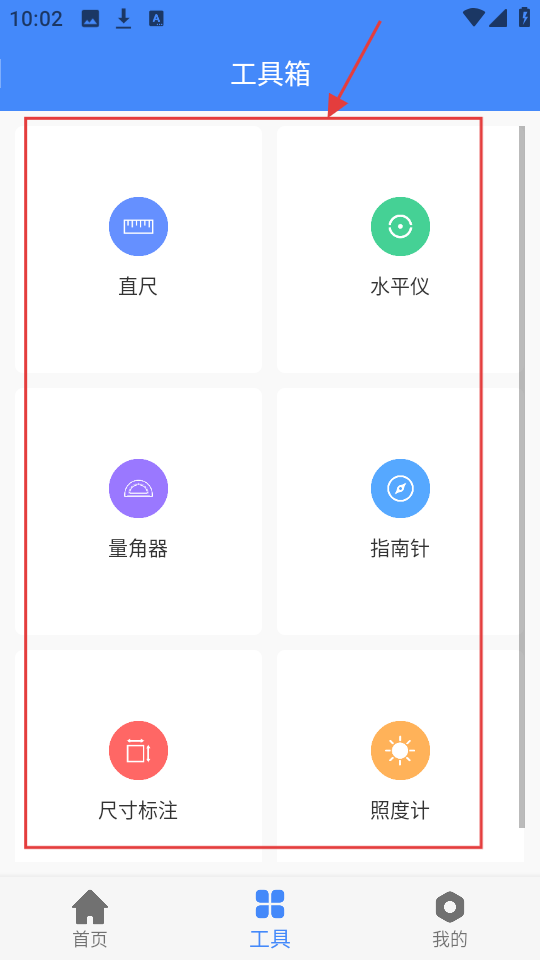 3、在“工具箱”页面,能看到多种工具,若想使用照度计,点击【照度计】选项,就能进入照度计页面啦。