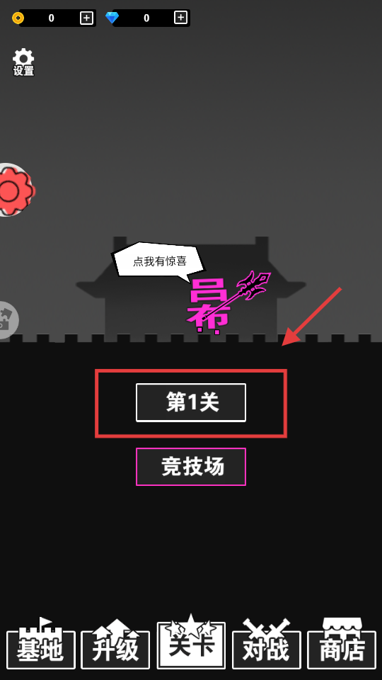 1、点击【第1关】开启游戏,进入策略对战场景,准备挑选将士出战。