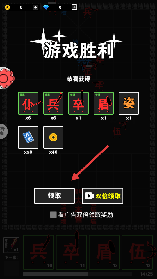 4、游戏胜利后,点击【领取】获取奖励,或选择双倍领取提升奖励收益。