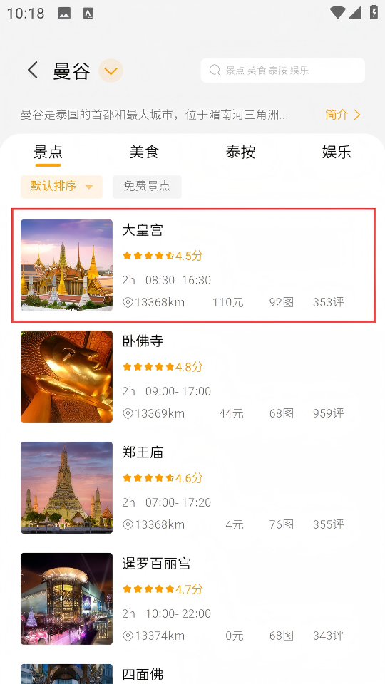 2、在景点探索页面,找到【曼谷】相关区域,选择【大皇宫】,进入其详情页面。