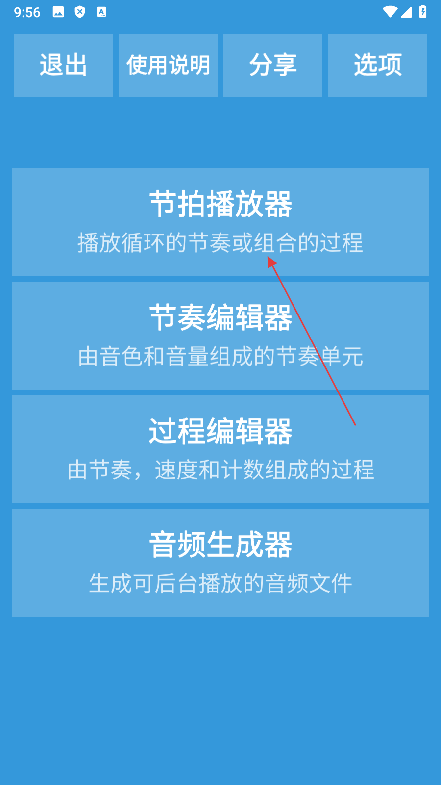 1、在功能选择界面,点击【节拍播放器】,进入节拍播放操作页面。