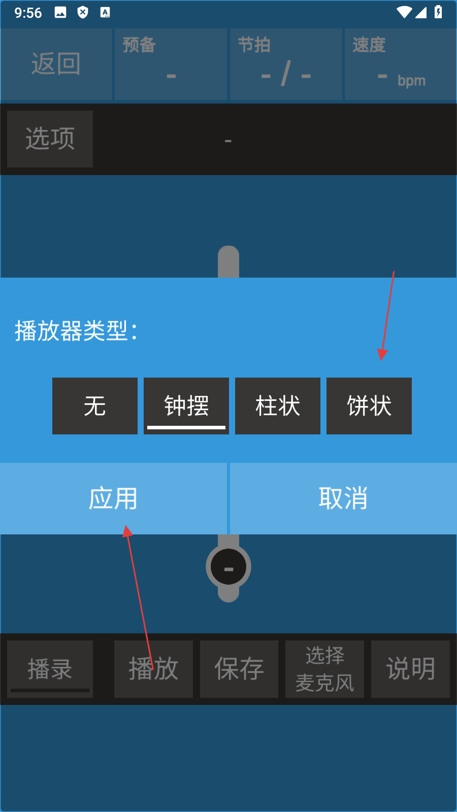 3、多样节拍表现:提供钟摆、柱状、饼状等丰富的节拍表现形式,同时支持边播边录功能,助力乐器爱好者录制练习过程。