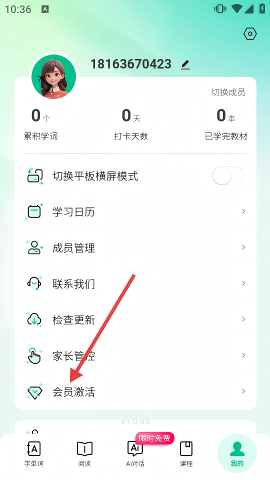 3、在“我的”页面,找到并点击【会员激活】选项。