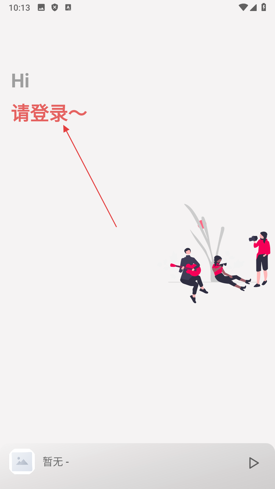 1、进入界面后,点击【请登录~】的提示,进入登录后能解锁更多功能,开启专属的音乐体验之旅。