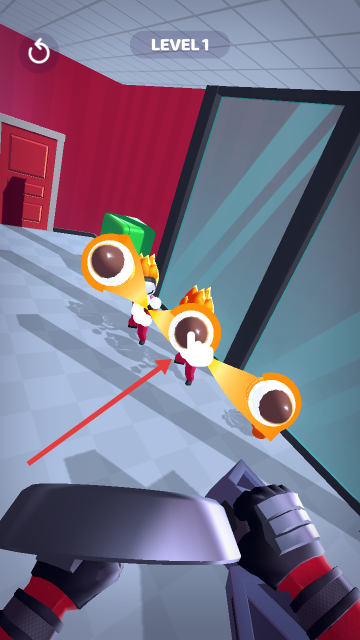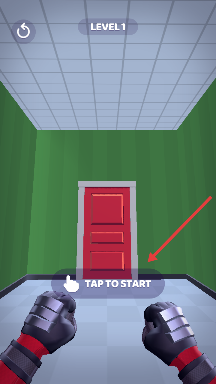 1、点击TAPTOSTART,进入LEVEL1,开启室内战斗关卡,准备与敌方角色展开对战。