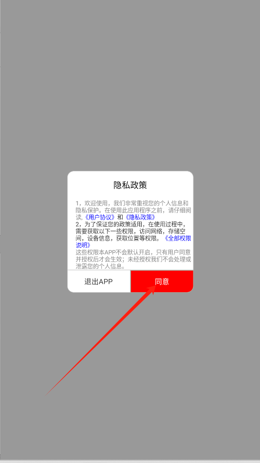 1、首次打开软件时,在隐私政策弹窗中阅读协议后,点击右的“同意”按钮。