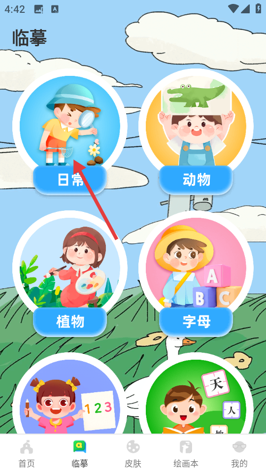 2、进入临摹页面,可选择【日常】分类的绘画主题。