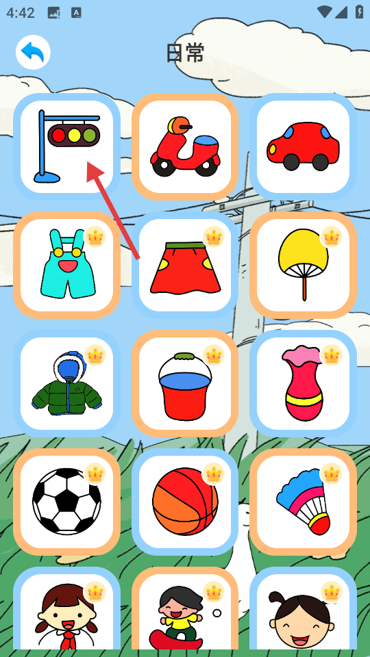 3、以【日常】分类为例,进入后可挑选如交通信号灯等具体图案,进行临摹绘画。