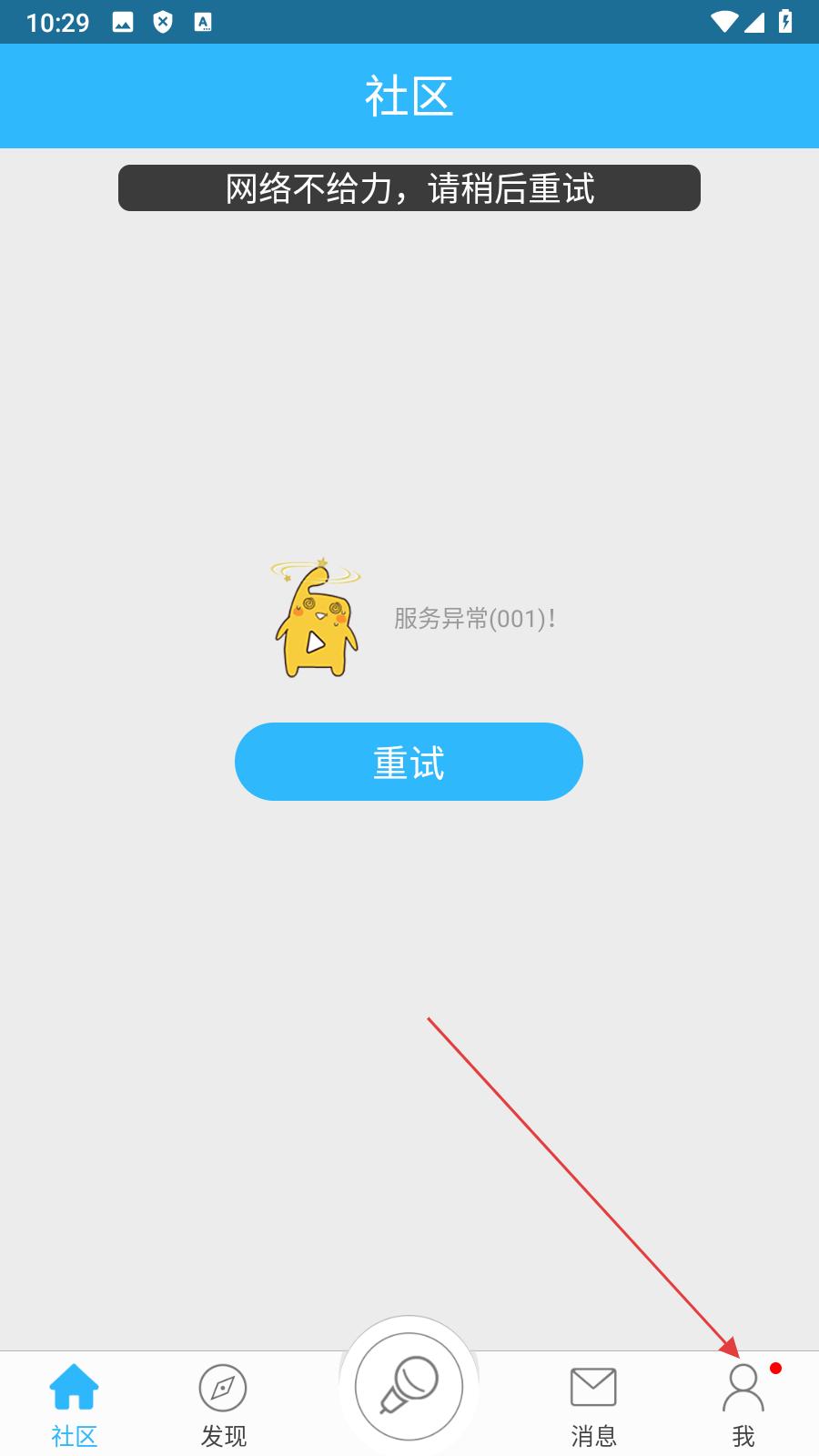 1、在社区页面,点击右下角【我】,进入个人中心页面。