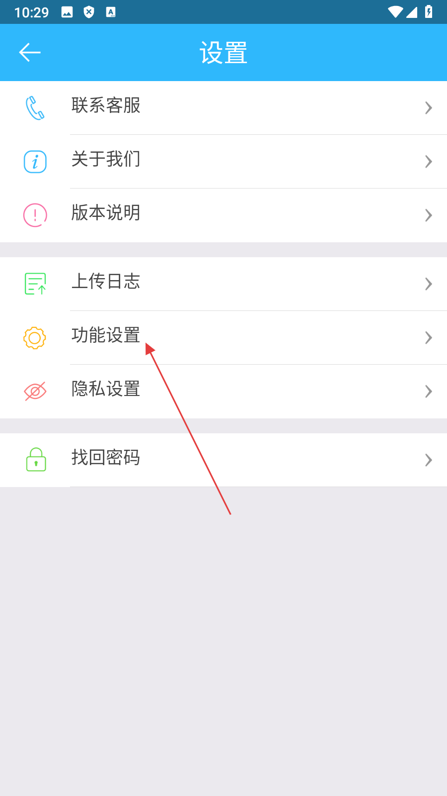 3、在设置页面,点击【功能设置】,进入功能设置详情页面。
