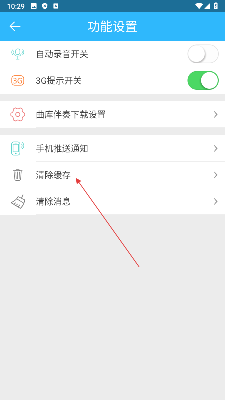 4、在功能设置页面,点击【清除缓存】,即可进行缓存清理操作。