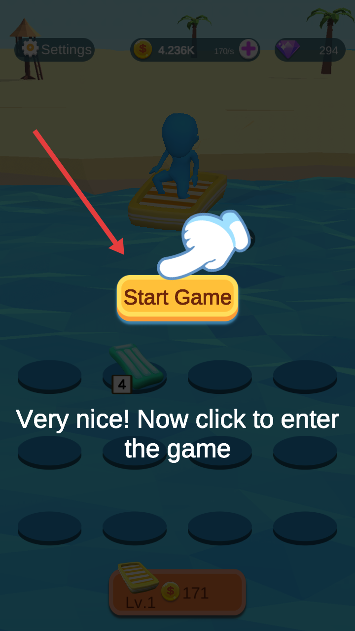 2、点击StartGame,进入泳池竞技关卡,开启水上对战挑战。