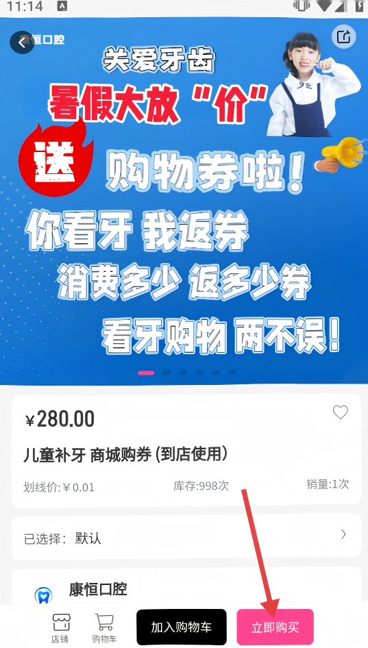 3、在商品详情页,查看价格、库存等信息后,点击【立即购买】。