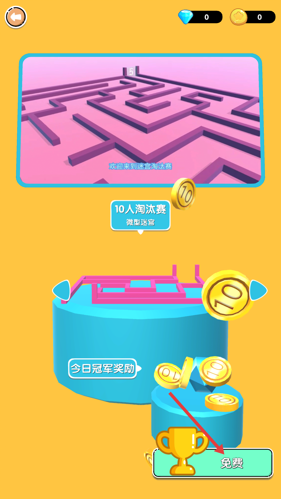 2、点击【免费】按钮,进入迷宫淘汰赛。