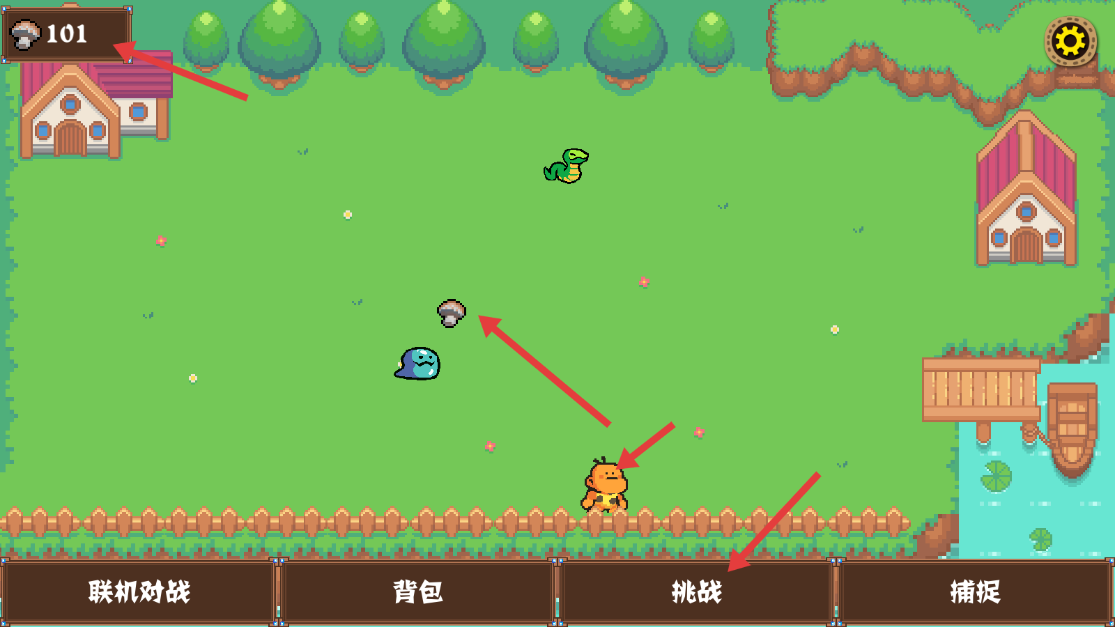 2、移动角色在地图中收集蘑菇道具,点击【挑战】按钮,参与对战。
