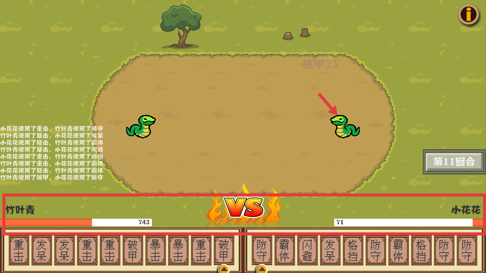 4、根据双方血量和技能,选择合适的招式,击败对手。