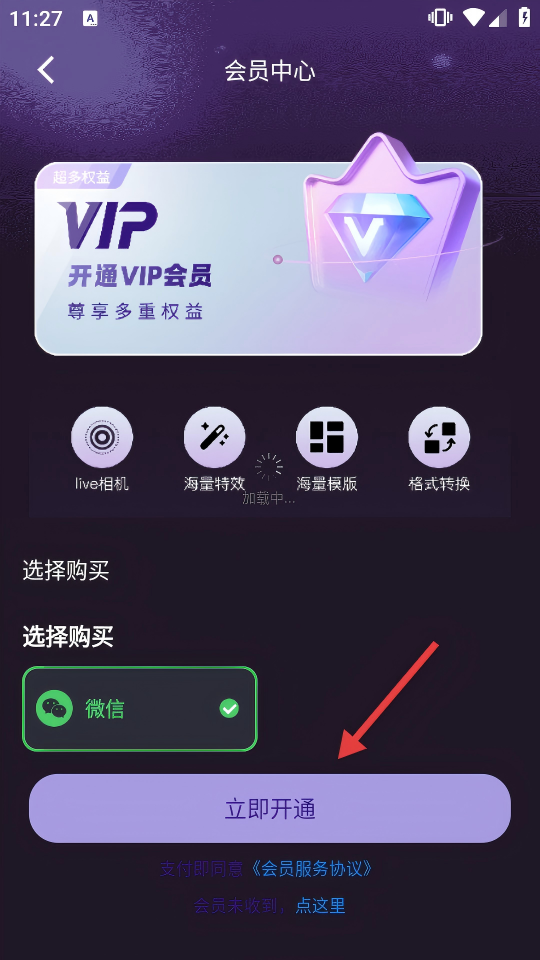 4、在会员中心,选择支付方式,点击【立即开通】,开通VIP会员以畅享更多权益。