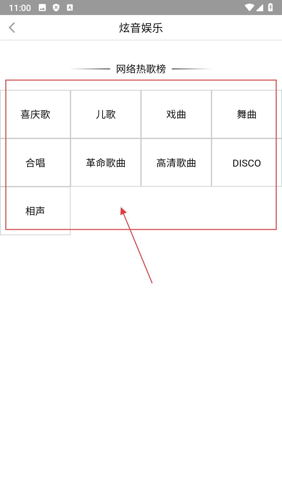 2、在炫音娱乐界面,有【喜庆歌、儿歌、戏曲】等多种分类,可根据喜好选择不同类型的内容。