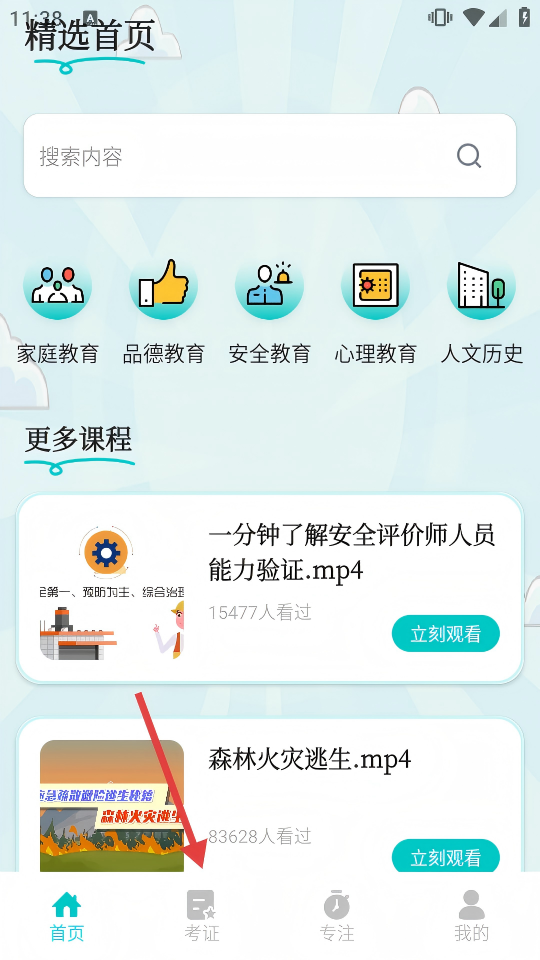 1、打开学习类APP首页,点击底部【考证】,进入考证页面。