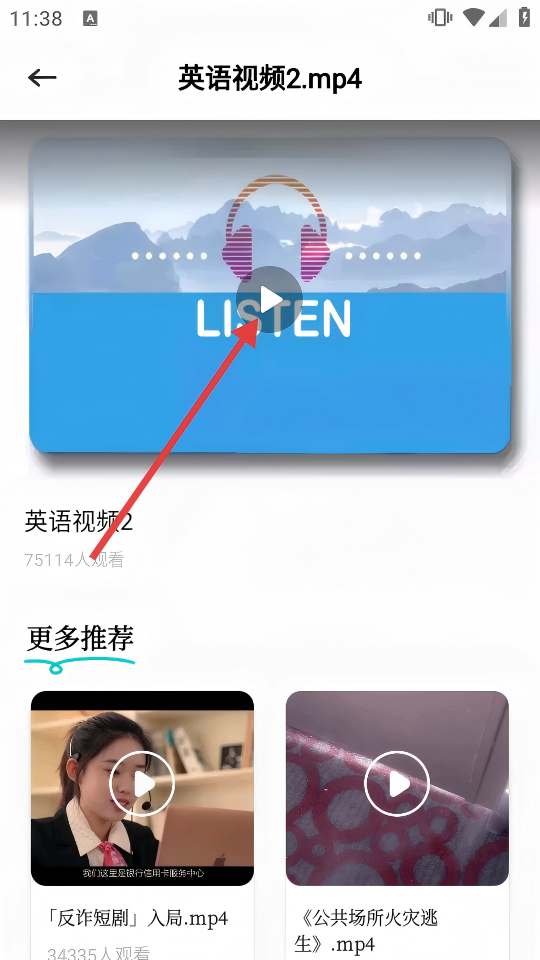 3、在视频详情页,点击播放按钮,开始播放“英语视频2.mp4”。