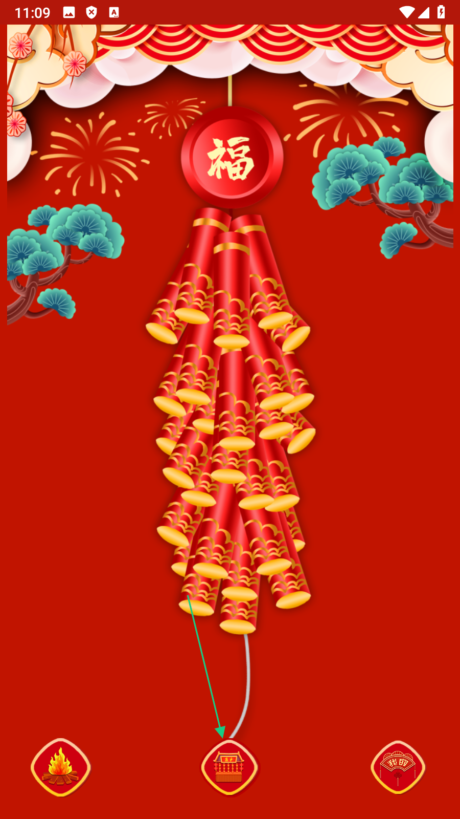1、在新春主题界面,点击【底部中间的图标】,进入鞭炮集市页面。