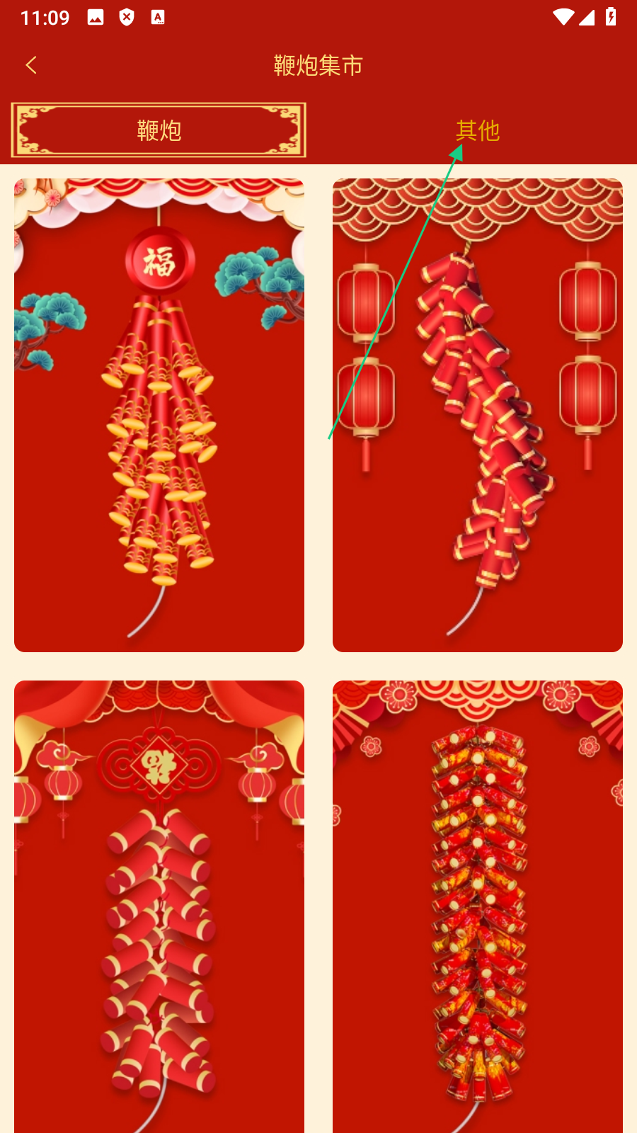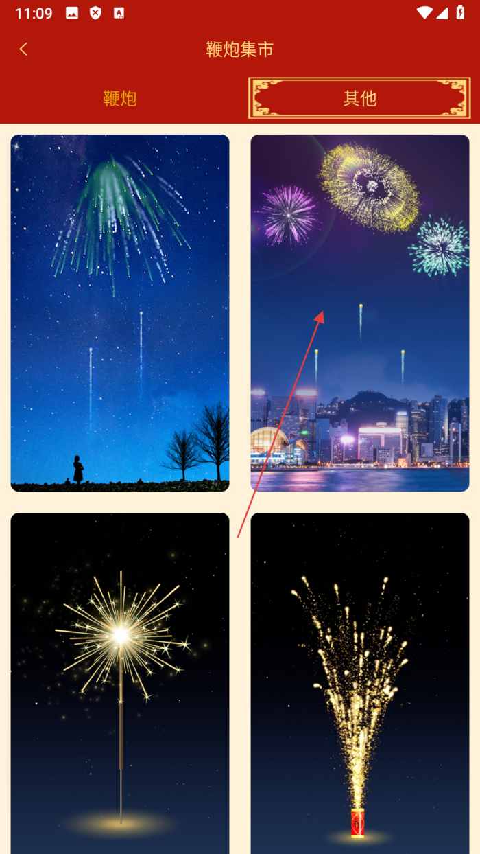 2、在鞭炮集市页面,点击顶部【其他】选项,切换到其他类别的烟花展示。