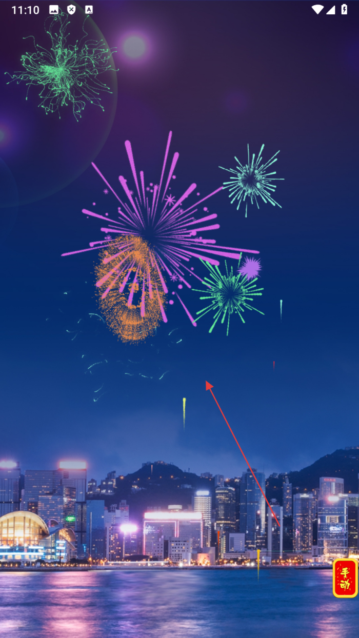 4、进入烟花播放界面后,点击【屏幕】召唤烟花,即可欣赏到所选烟花绽放的绚丽效果。