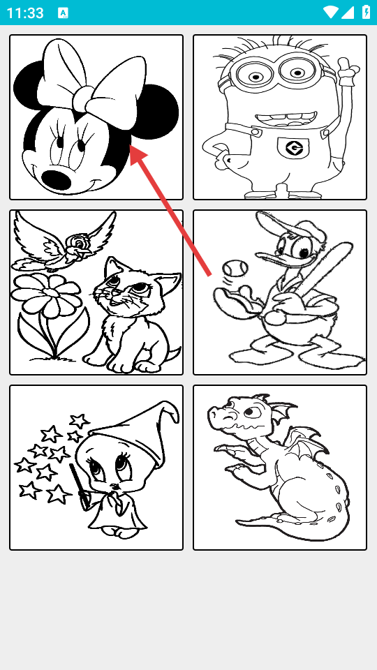 3、进入【卡通】填色页面,挑选喜欢的图案。