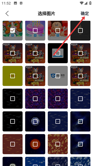 2、在【选择图片】页面挑选想要编辑的图片,选好后点击右上角“确定”按钮。
