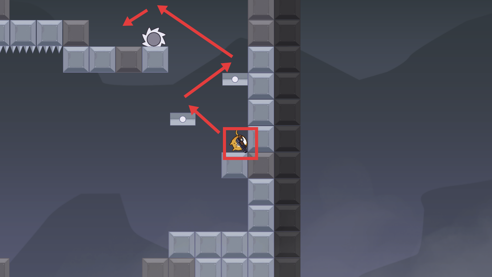 4、面对锯片等陷阱,利用场景中的平台规划移动路径,灵活躲避陷阱,持续向关卡深处前进。