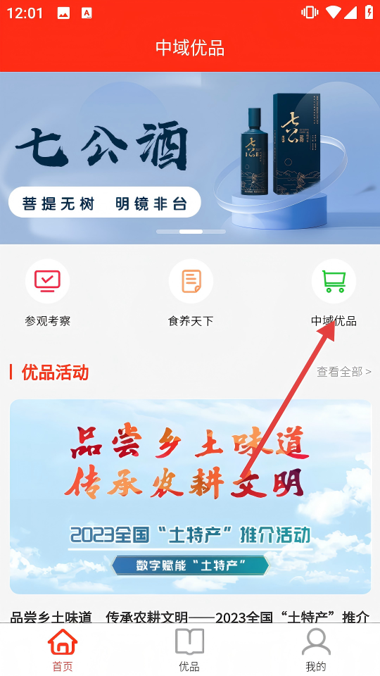 1、打开“中域优品”APP首页,点击【中域优品】,进入商品列表页。