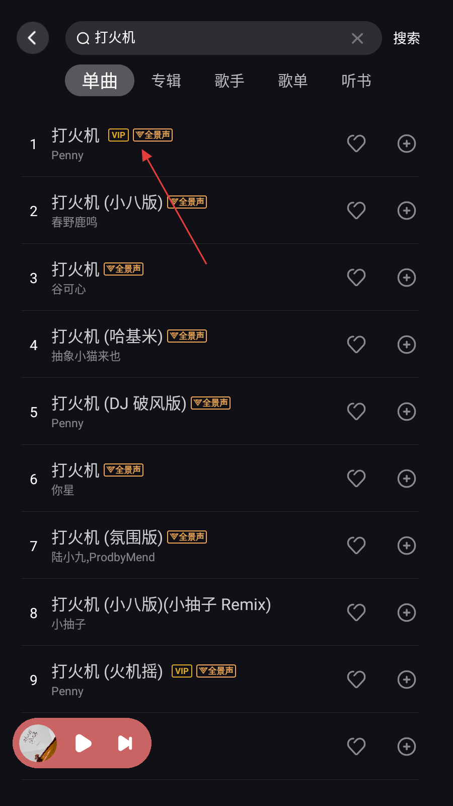3、在搜索结果里,选择【目标歌曲】,进入播放页面。