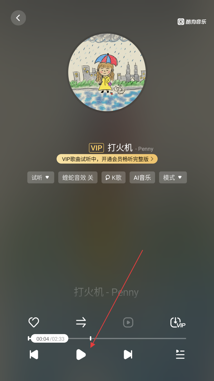 4、进入歌曲播放页面,点击【播放按钮】,即可开始聆听喜欢的歌曲。
