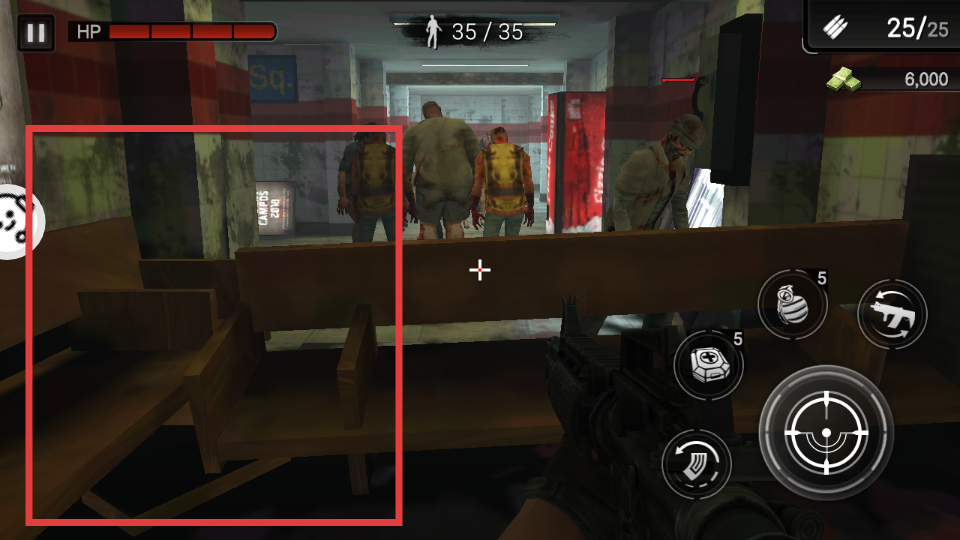 2、进入关卡后,滑动红框内位置进行瞄准僵尸。