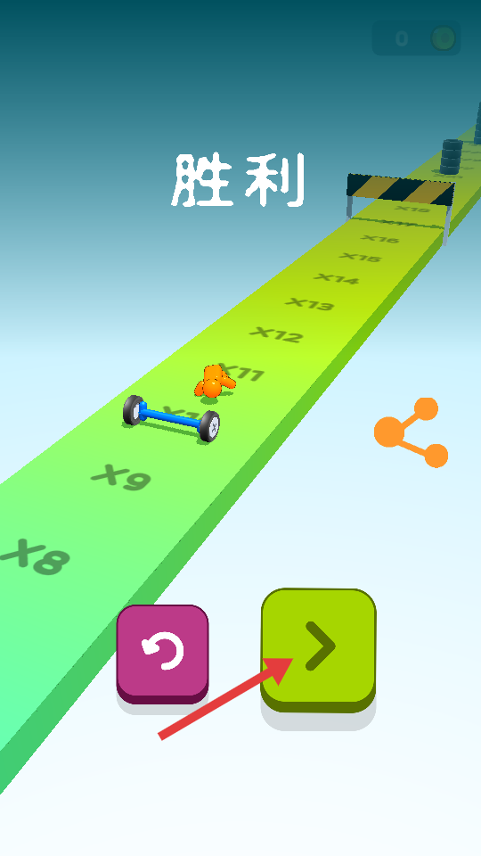 4、成功到达终点后,点击绿色箭头按钮,进入下一关继续挑战。