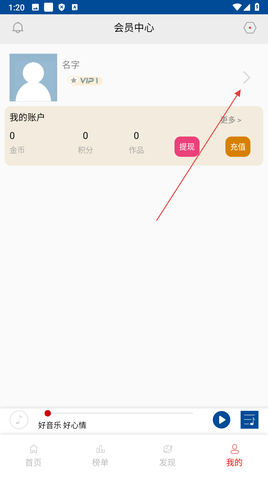 2、在会员中心页面,点击【名字区域旁的箭头】,进入编辑资料页面。