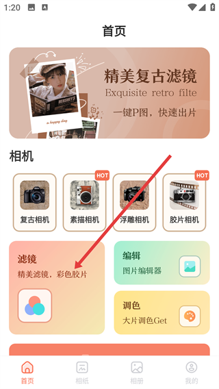 1、进入软件首页,点击【滤镜】选项,进入图片选择界面。