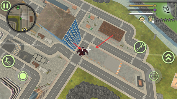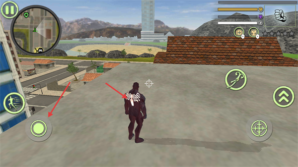 3、用左侧虚拟摇杆,移动角色在屋顶等区域行动。