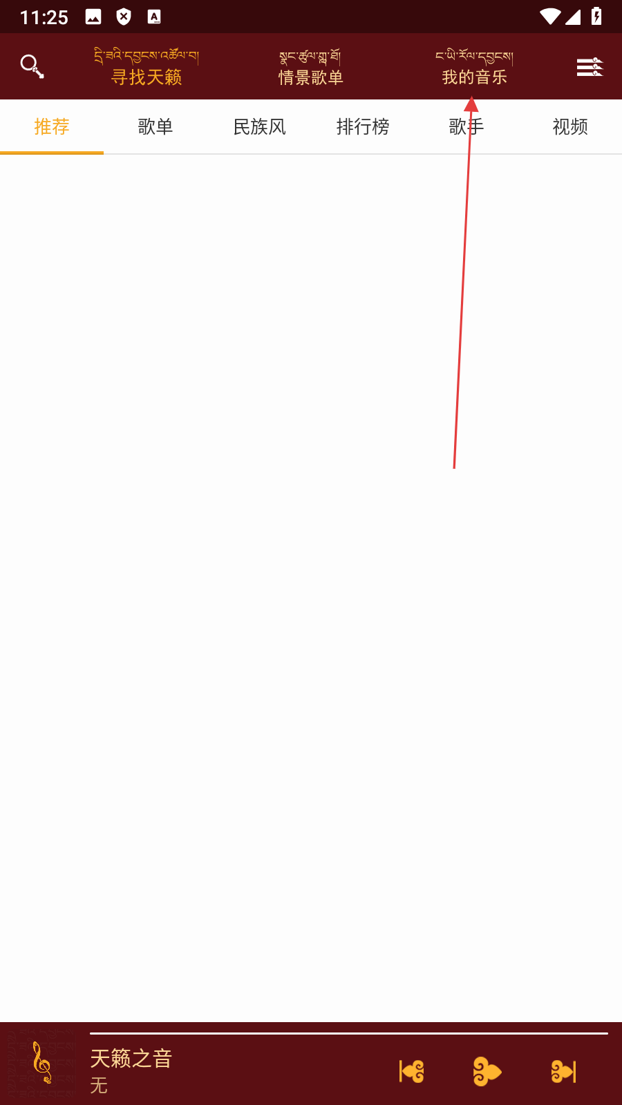 1、在主界面,点击顶部【我的音乐】,进入个人音乐页面。