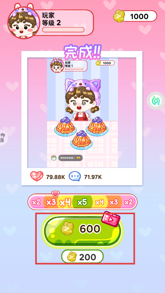 4、直播完成后,可选择领取【600】或【200】金币奖励,积累资源用于升级或解锁内容。