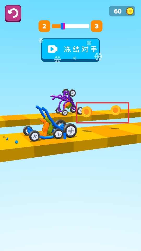 3、在赛道上行驶时,尽量收集金币,遇到对手还可选择【冻结对手】来阻碍其前进。